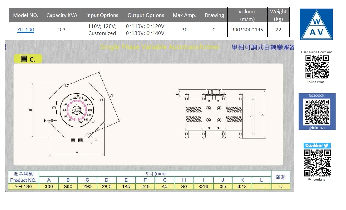 YU HSENG ELECTRIC VARIABLE VOLTAGE TRANSFORMER FULL SPECIFICATION